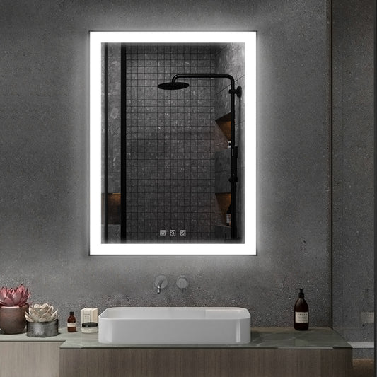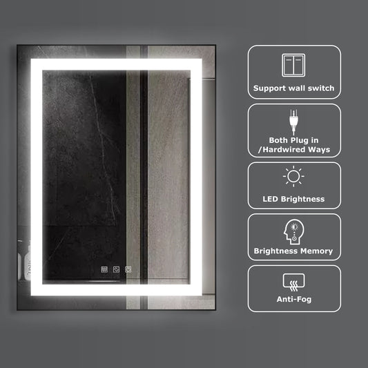 Kiva-Rhyme Black Framed LED Vanity Wall Mounted Mirror, 24x36", 3 Buttons